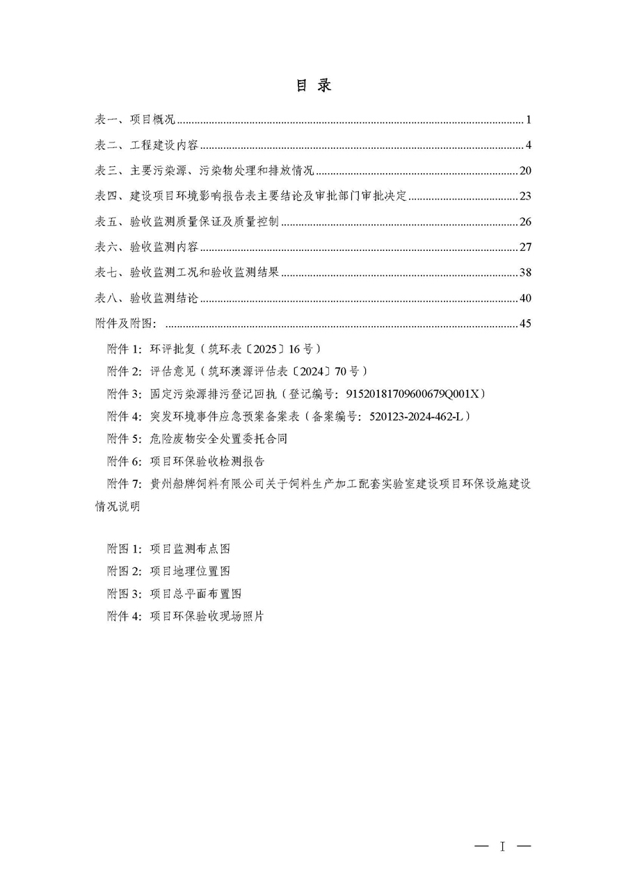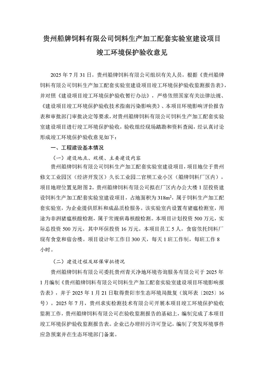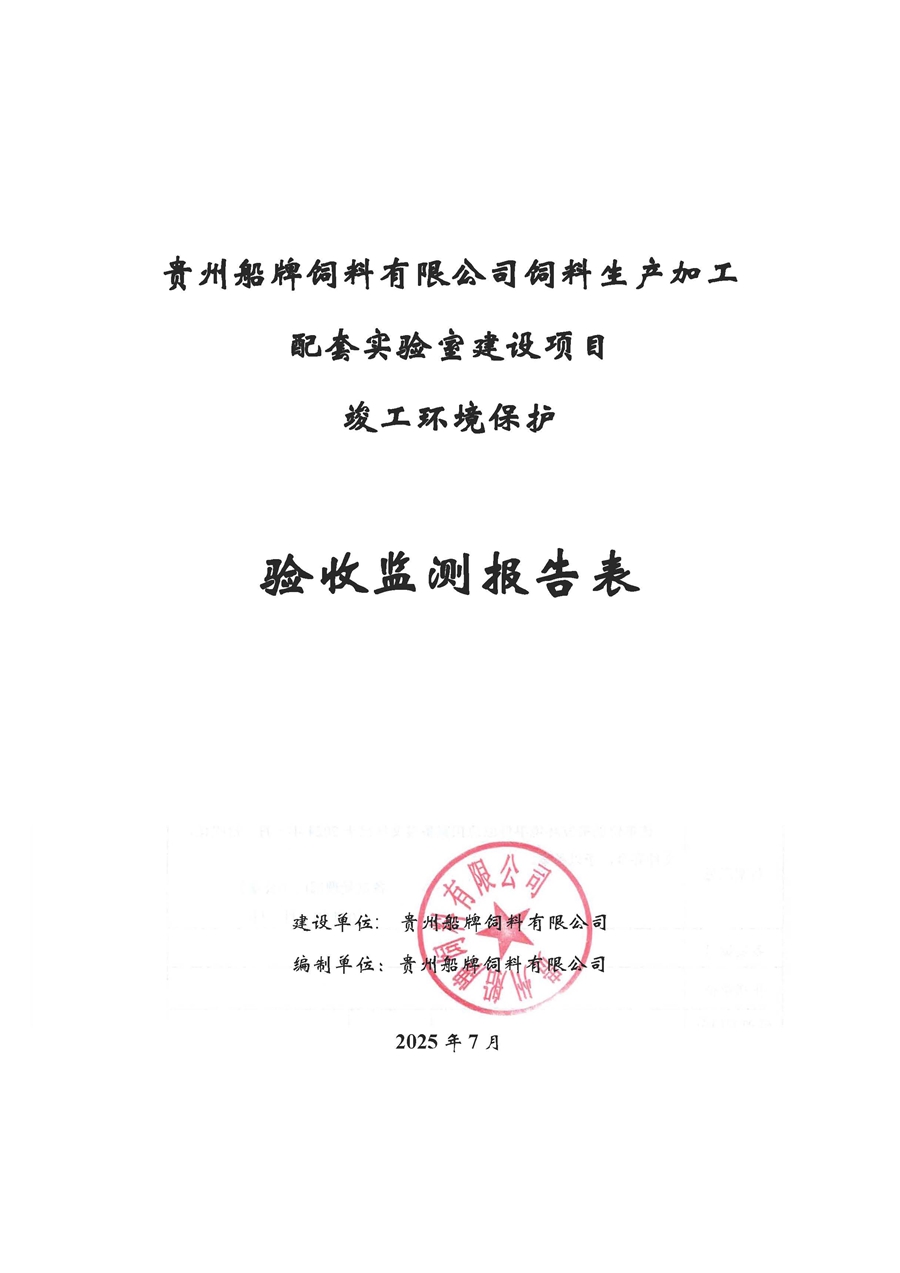 根据《国务院关于修改<建设项目竣工环境保护管理条例>的决定》(国务院令第682号),以及环保部《关于发布<建设项目竣工环境保护保护验收暂行办法>的公告》(国环规环评[2017]4号),现将《贵州船牌饲料有限公司饲料生产加工配套实验室建设项目竣工环境保护竣工环境保护验收监测报告》公示如下: