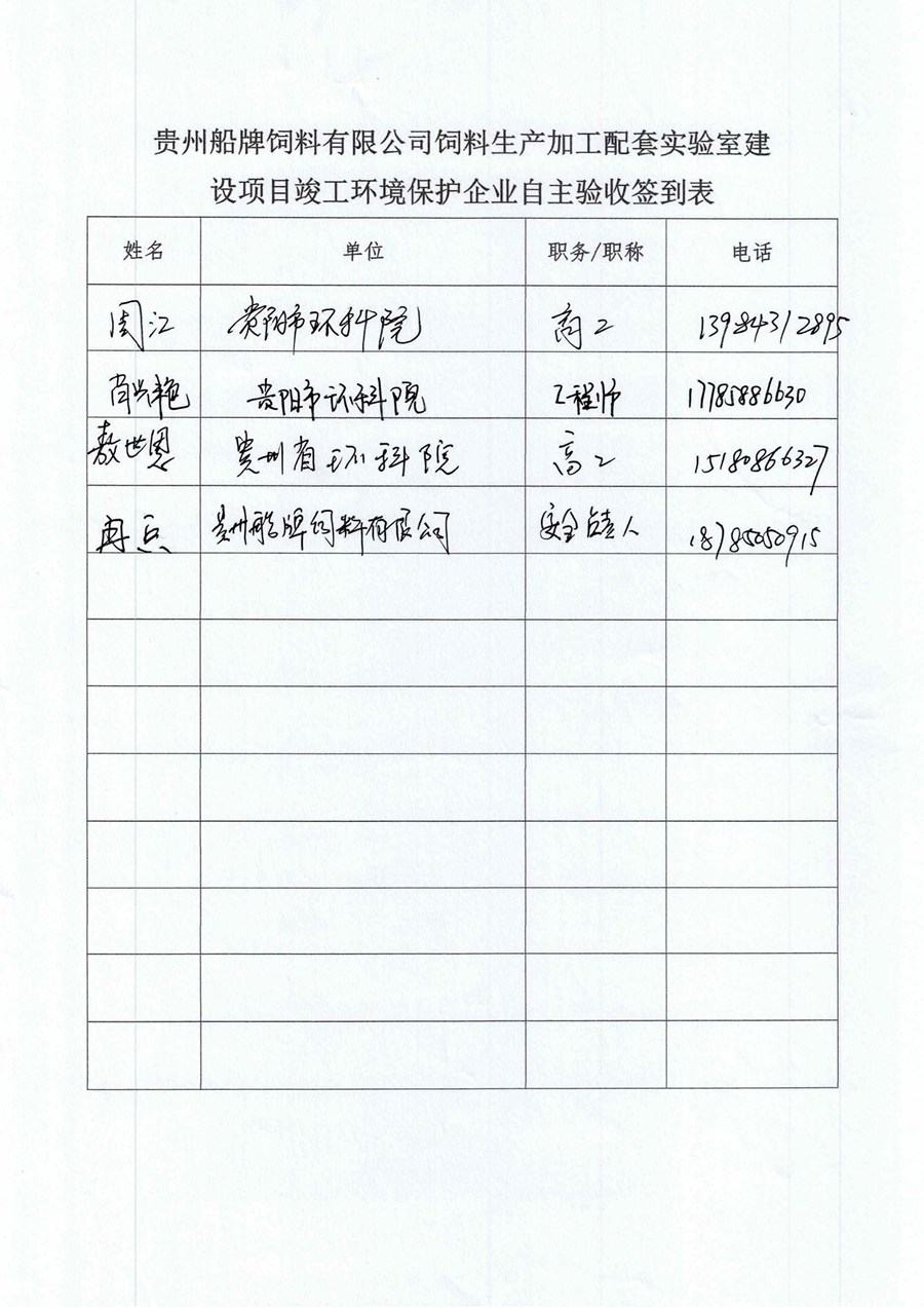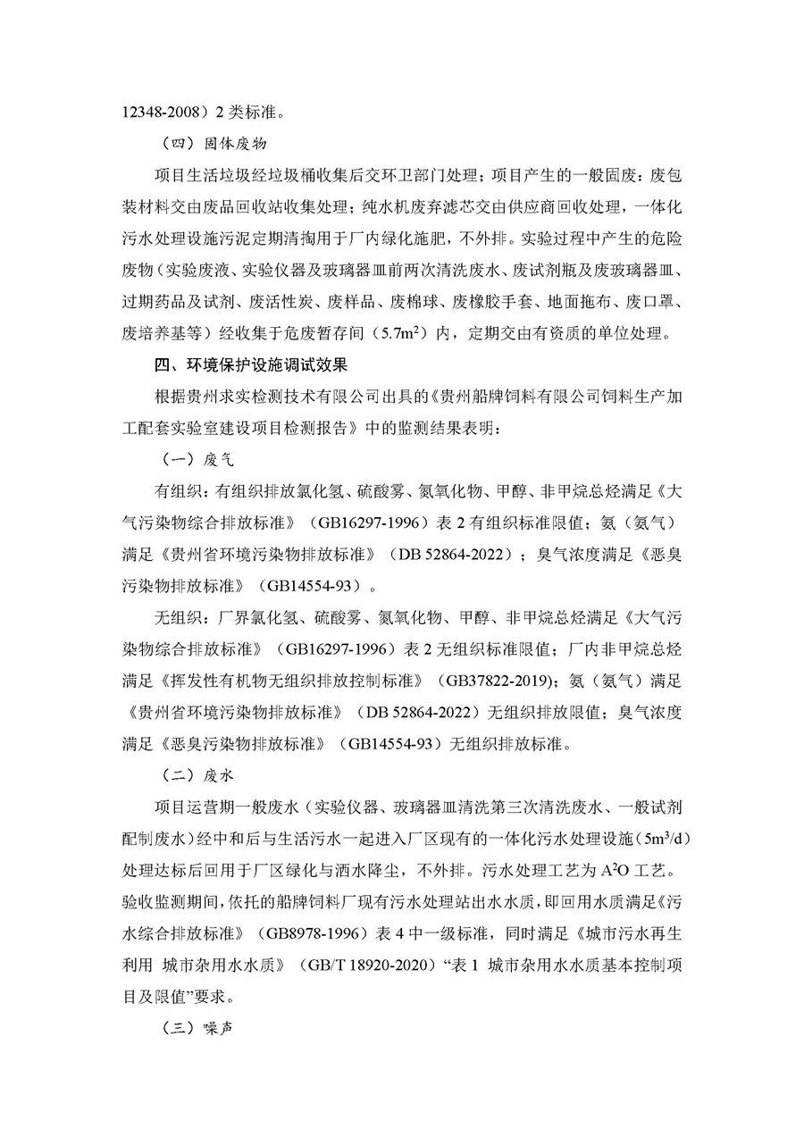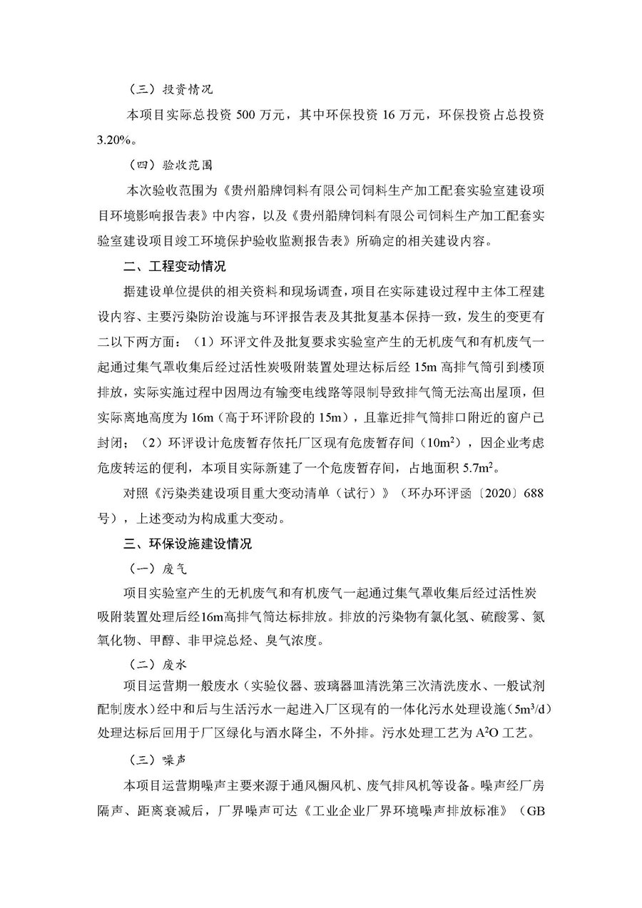 根据《国务院关于修改<建设项目竣工环境保护管理条例>的决定》(国务院令第682号),以及环保部《关于发布<建设项目竣工环境保护保护验收暂行办法>的公告》(国环规环评[2017]4号),现将《贵州船牌饲料有限公司饲料生产加工配套实验室建设项目竣工环境保护竣工环境保护验收监测报告》公示如下: