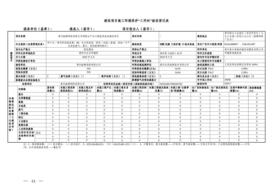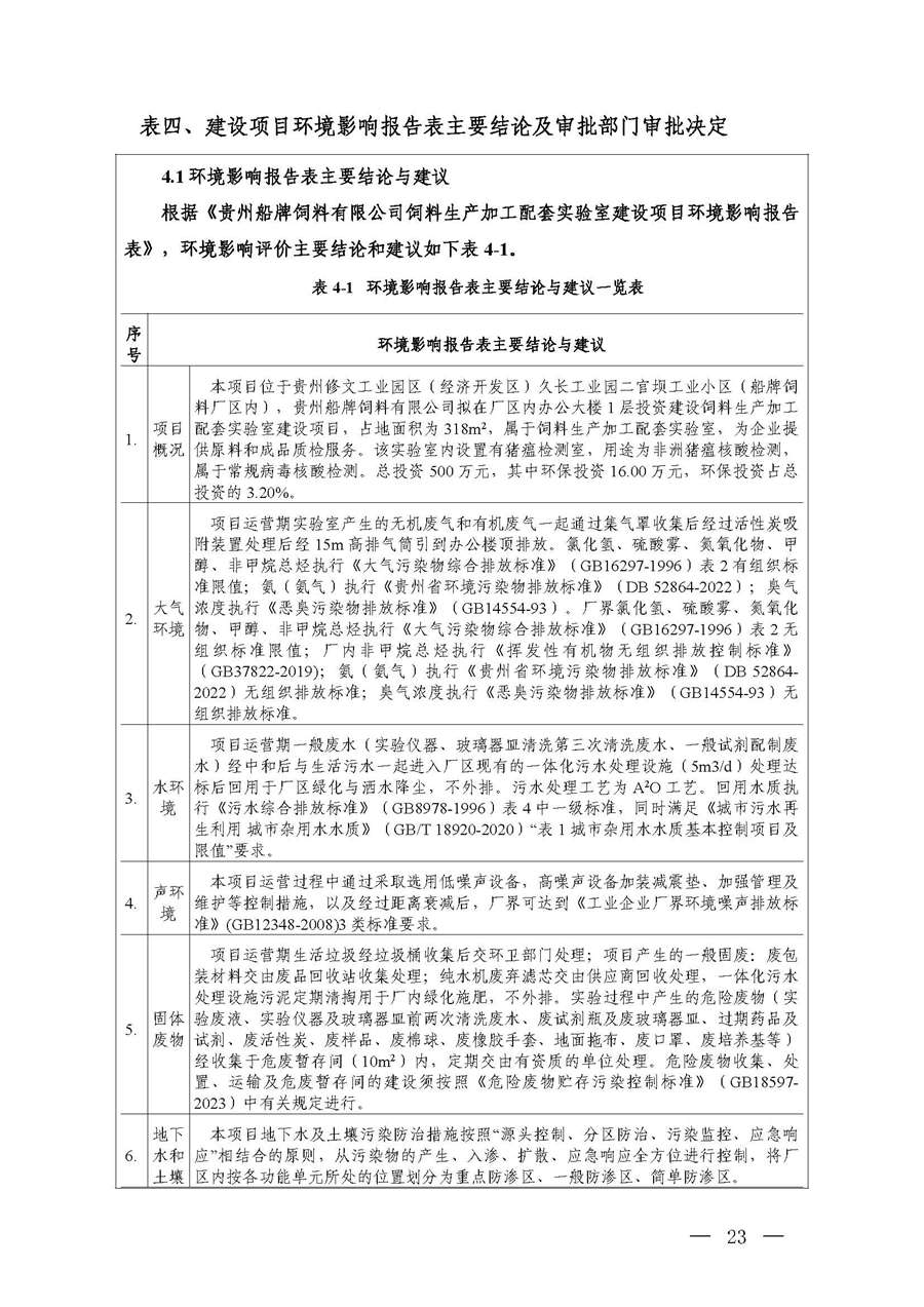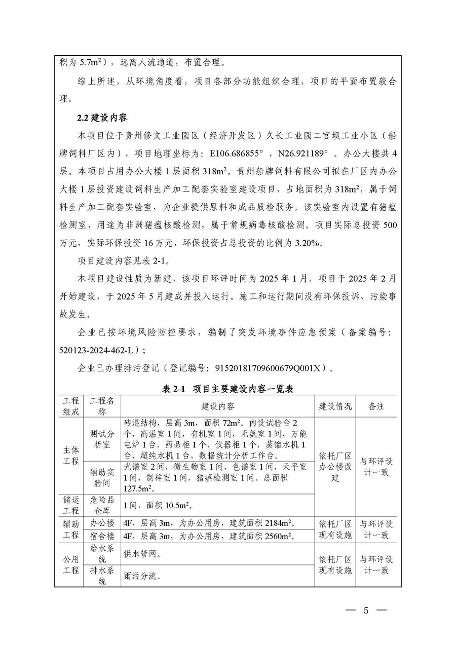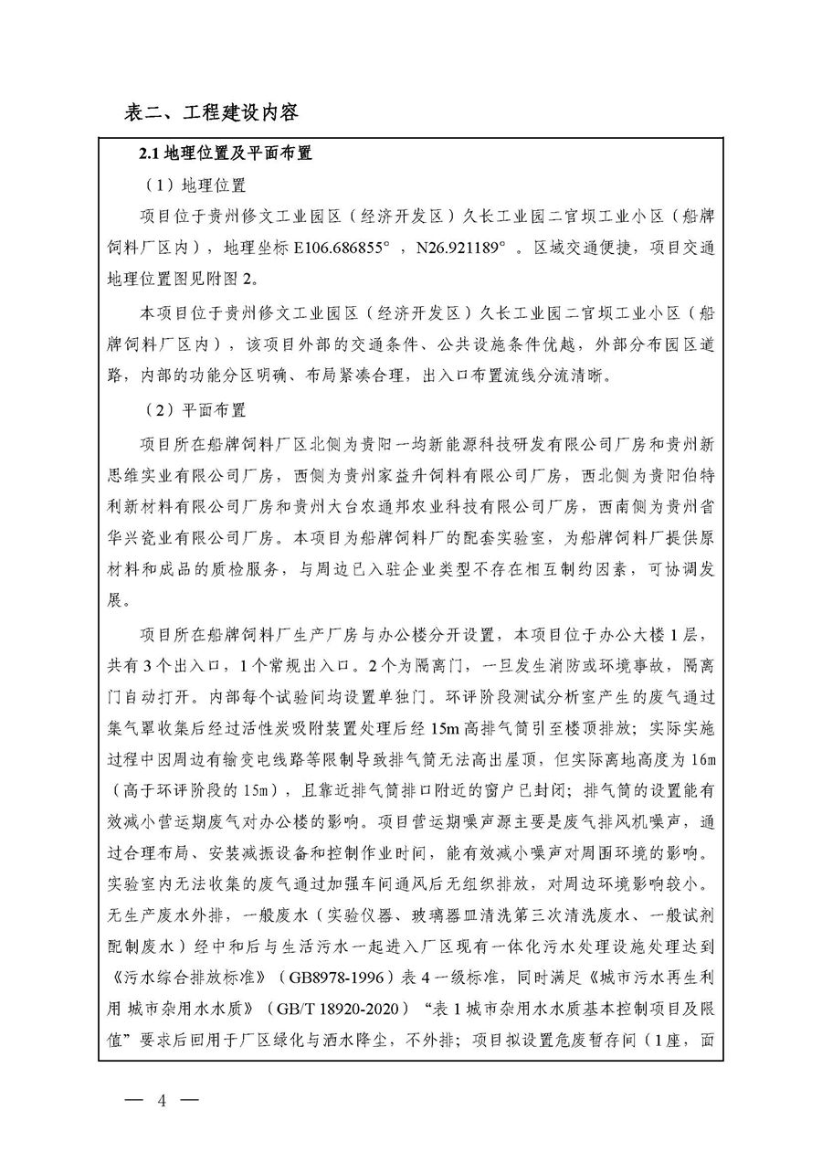 项目名称:贵州船牌饲料有限公司饲料生产加工配套实验室建设项目
