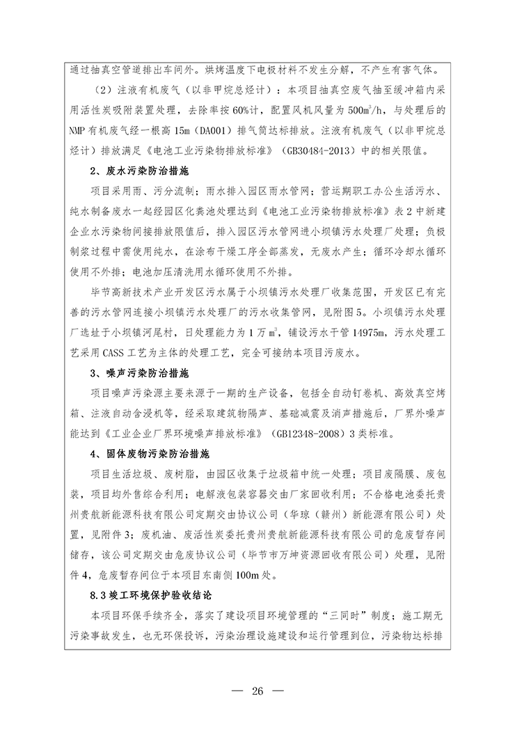 根据《国务院关于修改<建设项目竣工环境保护管理条例>的决定》(国务院令第682号),以及环保部《关于发布<建设项目竣工环境保护保护验收暂行办法>的公告》(国环规环评[2017]4号),现将《毕节高新区年产5000万只高性能铝壳锂电池生产项目(部分验收)竣工环境保护验收监测报告表》公示如下: